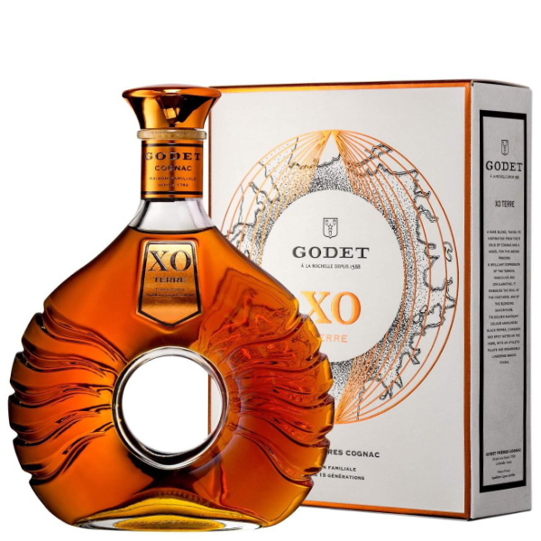 Cognac de colectie, de la casa producatoare Godet, o casa cu traditie si istorie de 400 de ani, definit de un melanj rar de blenduri cu provenienta din sase regiuni tipice pentru producerea de cognac, maturat indelung timp de 30 de ani. Godet XO Terre este o bautura de exceptie, complexa, ce se defineste prin bogatia aromelor fructate si florale ce se deschid cu note de piele, vanilie, mirodenii, scortisoara, influente lemnoase si piper.