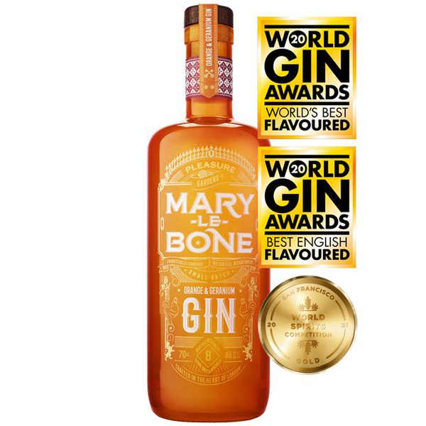 Mary Le Bone Orange & Geranium este un gin premium produs prin distilrea a opt plante botanice si anume: coriandru,ienupar, coaja de portocale dulci, muscate, coaja de lamaie, coaja de Cassia, radacina de Angelica si radacina de Orris. La nas prezinta note proaspete de pin, piper, citrice si tonuri florale de margarete. Gustul complex, perfect echilibrat surprinde prin arome intense de ienupar, portocale dulci si nuante florale. Finisajul remanent dezvaluie condimente si produse de patiserie.