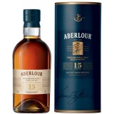 Acest Aberlour este un Highland Single Malt Scotch Whisky maturat timp de 15 ani in butoaie traditionale, atent selectionate, fapt ce-i confera o calitate desavarsita. La nas prezinta note de malt si miere, gustul fiind rotund cu tente de vanilie, iar finalul lung si intens, te surprinde cu arome de cocos si condimente.